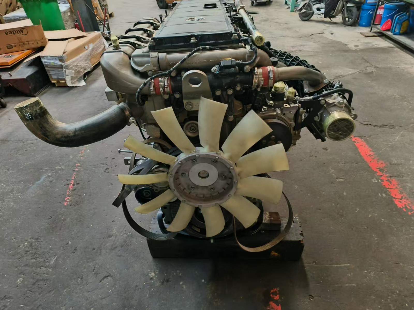 河南惠眾于2024年10月受到老客戶河南神大公司委托,從工地拉回了一臺奔馳OM473發動機,該發動機缸體損壞。